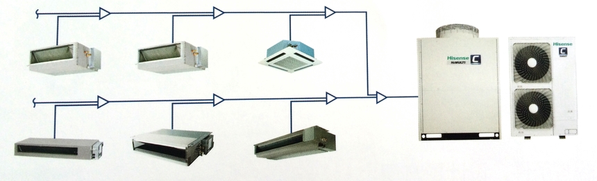 多联机还可按照用户的要求,实现各种控制方法,例如使用***、线控器、或集中控制器控制,甚至可以通过接口与楼宇自控系统连接,实现电费的自动计量和用户电费分摊。同时室内外机均有自动诊断功能,不需要专门管理人员,提高了检修效率。